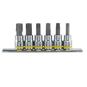The six piece set includes T40, T45, T47, T50, T55, T60, S-2 steel for strength and durability, a convenient clip rack, and chrome plating for easy cleanup and pro looks.