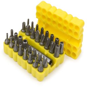 Bit Sizes: 7 Tamper Resistant Bits T-8 through T-40; 12 Tamper Resistant Hex Bits 5/64 through 5/32 and 2 through 6 mm; 12 Spanner, 3 Wing and 4 Wing Bits