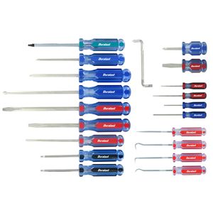 Set includes slotted: 3/32 In. x 2 In., 1/8 In. x 2-1/2 In., 3/16 In. x 4 In., 1/4 In. x 4 In., 1/4 In. x 6 In., 1/4 In. x 1-1/2 In., offset screwdriver; Phillips: #5, #0 x 2-1/2 In., #1 x 3 In., #2 x 4 In., #2 x 6 In., #2 x 1-1/2 In.; star: #15, #20; square: #2, plus 4 piece hook and pick set